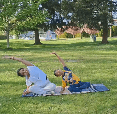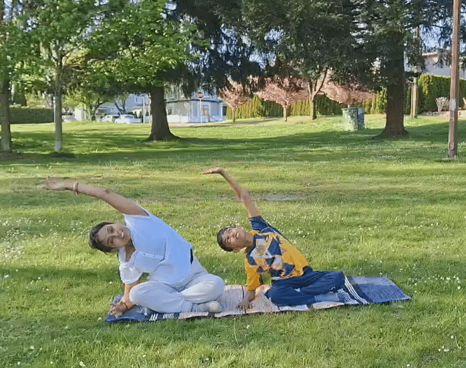 Instead of traditional workouts, do simple stretches or yoga poses with your child. Try Cat-Cow, Child’s Pose, or Downward Dog while playing.